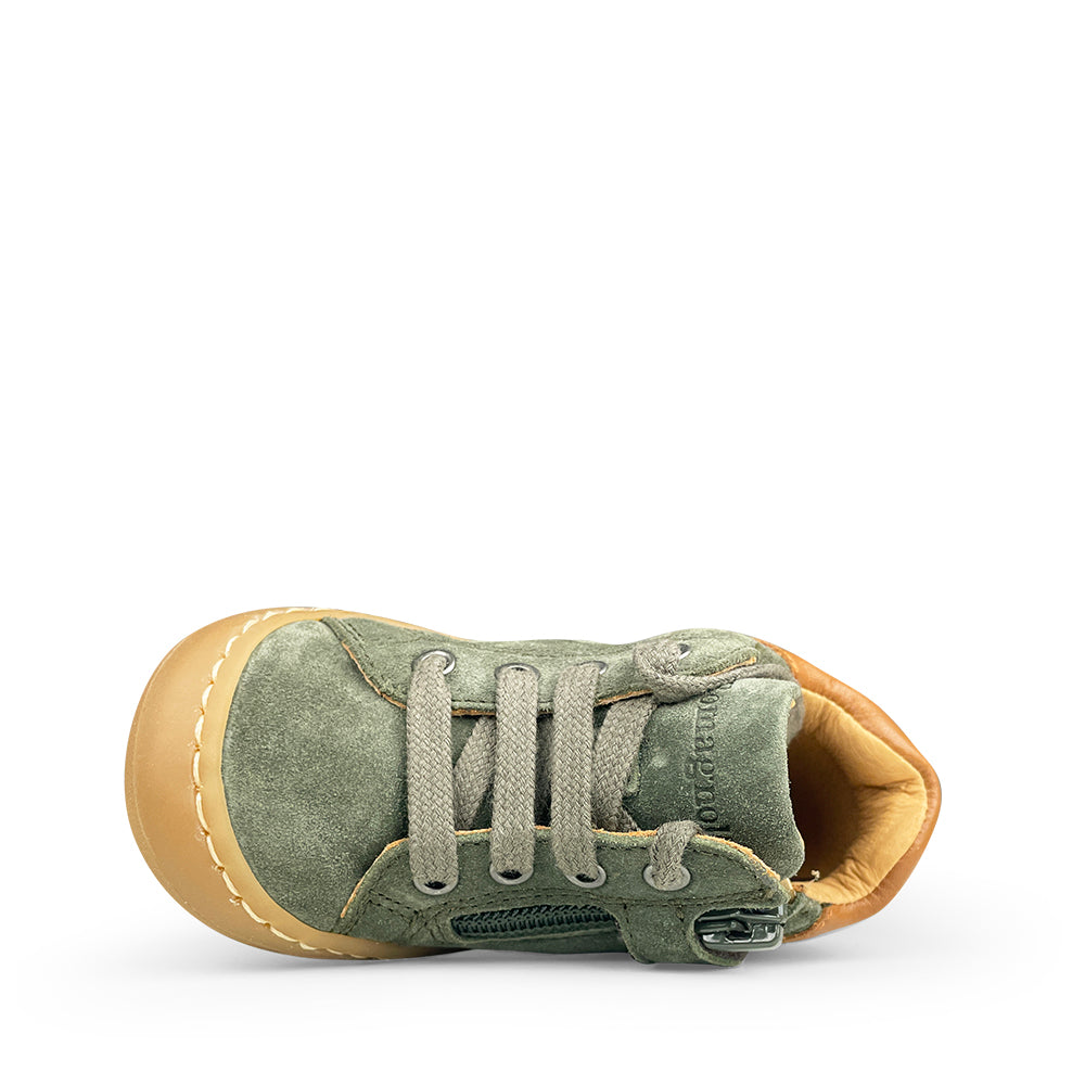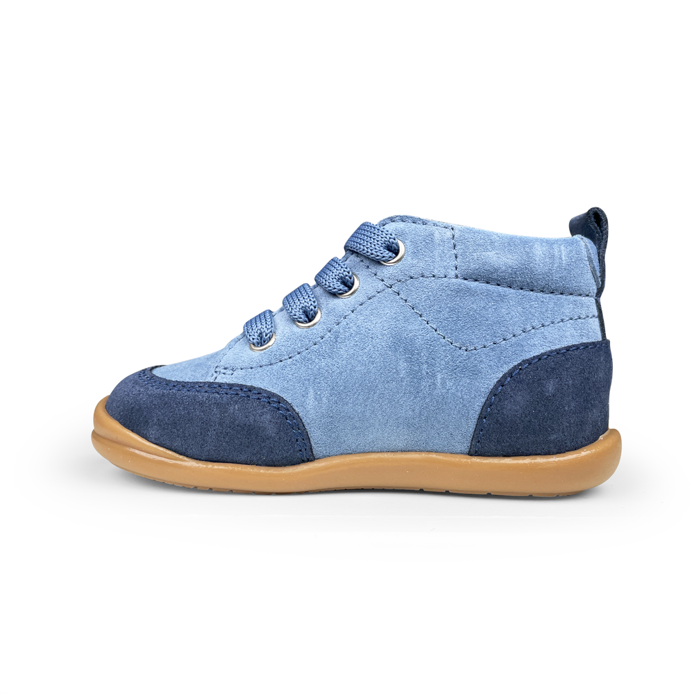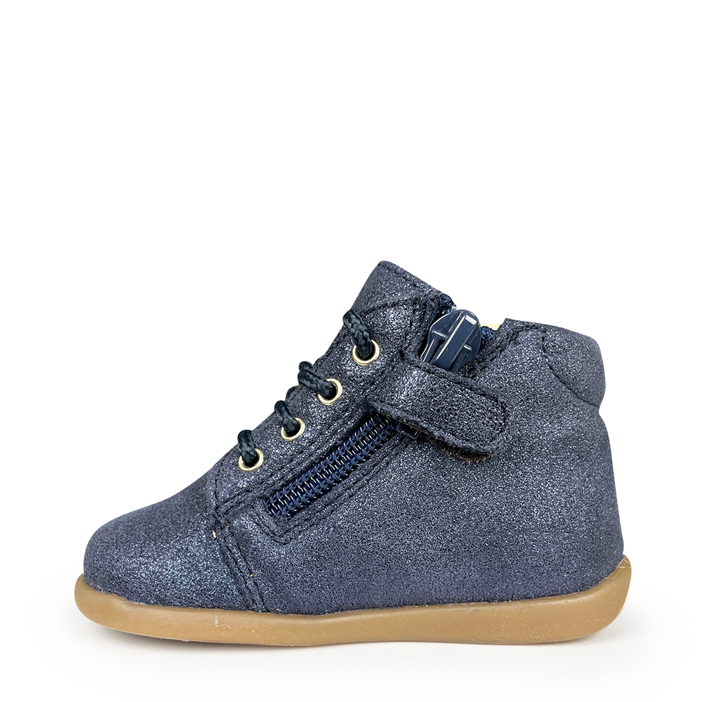 Wanneer je kindje vlot zelfstandig begint te stappen, is het tijd voor de eerste echte schoenen. In deze fase hebben ze meer steun nodig om hun evenwicht te bewaren, maar moeten de schoenen nog steeds licht en soepel zijn. Zo kan de voet zich natuurlijk afwikkelen en blijft je kind vrij bewegen.
