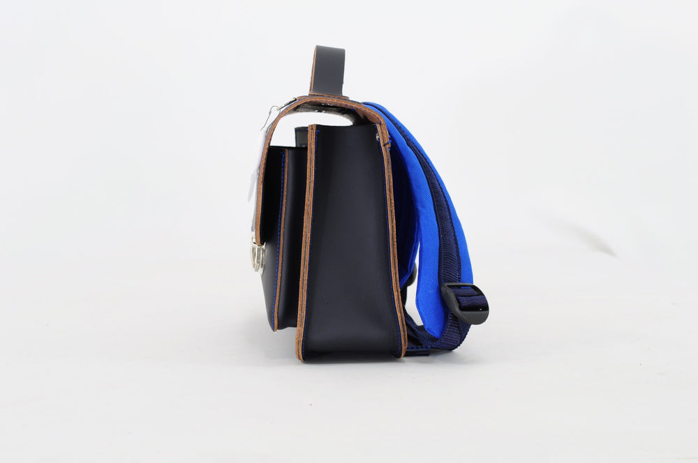 De boekentas van Own Stuff is ontworpen met aandacht voor kinderruggen in beweging. Er zijn modellen op maat van kleuters met één groot vak en een voorvak, maar ook exemplaren voor het lager onderwijs, met twee grote A4-vakken en extra ruimte voor schriftjes, snacks of een drinkfles.