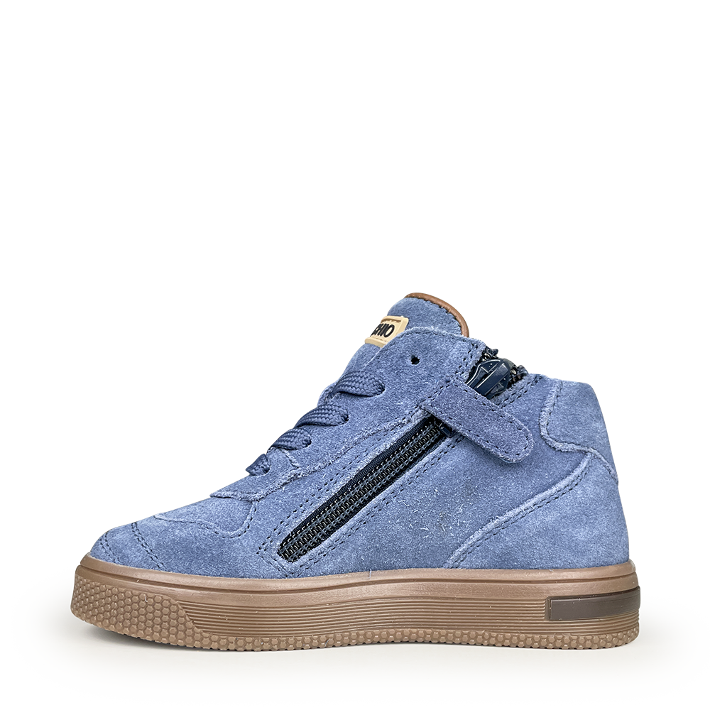 Eenvoudige klassevolle halfhoge sneaker in blauw suède. Blauw veters en rits met velcro aan de binnenkant van de schoen. Hierdoor zijn de schoenen gemakkelijk aan en uit te trekken. De sneakers lopen super comfortabel en geven iedere look een stoere en tegelijk klassieke touch.