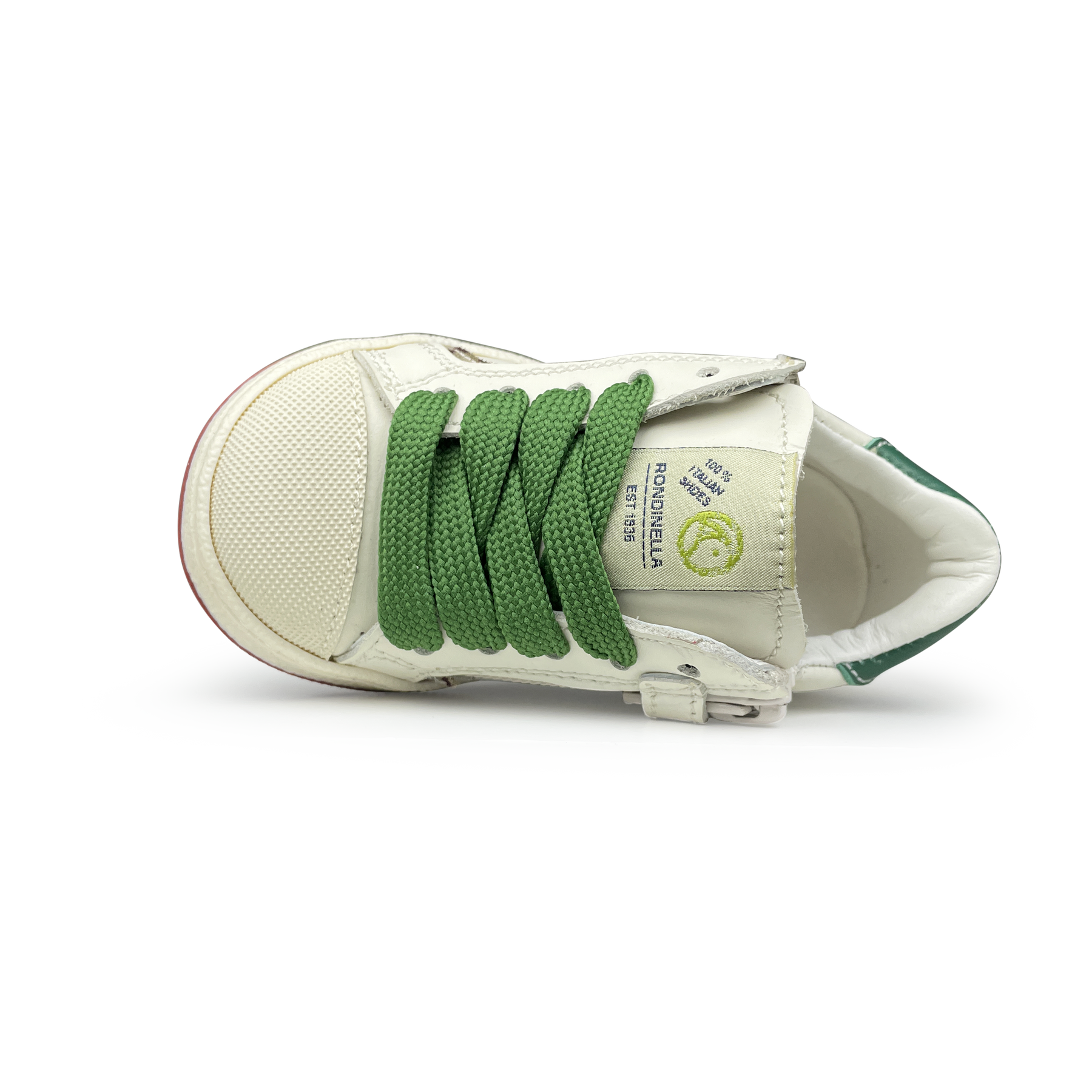 Deze hippe sneaker van Rondinella combineert trendy design met hoogwaardig comfort. Volledig uitgevoerd in soepel leder, zowel aan de binnen- als buitenzijde, biedt deze schoen een perfecte pasvorm en optimale ondersteuning voor groeiende voeten.