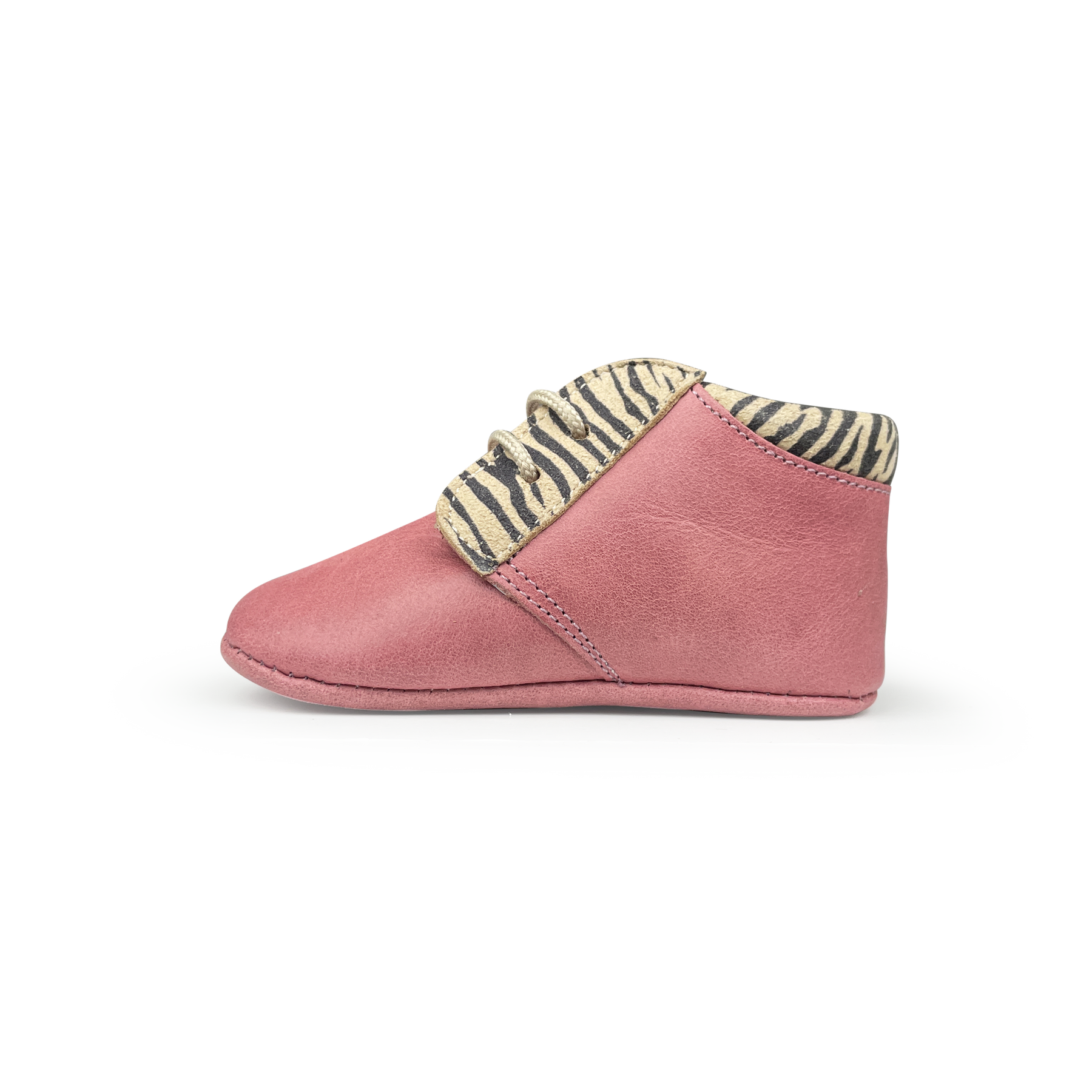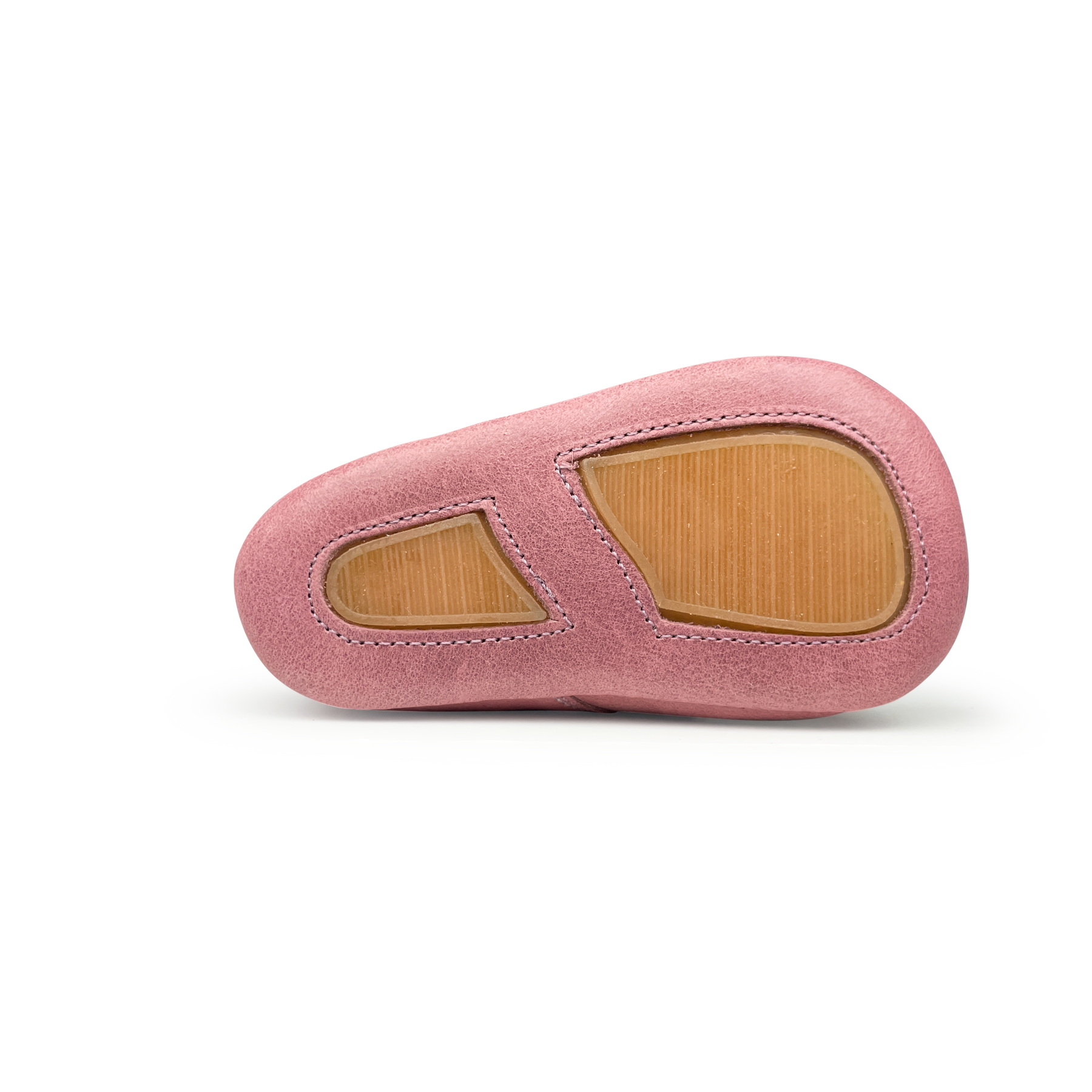 Simple yet a bold touch of leopard. Non-slip sole. Ideal for beginning walkers. Stays firmly attached to the feet.